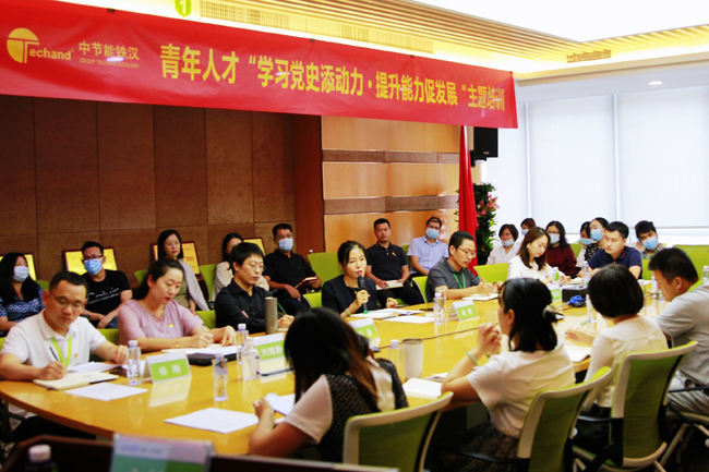 謝斐以《攻堅克難開新局•青春奮斗永向前》為題,結(jié)合黨的組織建設(shè)、干部選拔等黨史學(xué)習(xí)內(nèi)容,圍繞中節(jié)能鐵漢干部選拔、隊伍建設(shè)、人才工作等重點,開展黨史教育,勉勵公司青年人才強化使命感與責任擔當,增強發(fā)展信心、樹立科學(xué)目標,在今后的工作中齊心協(xié)力、攻克難關(guān)。