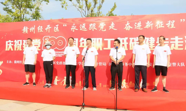 7月17日,中節(jié)能江西公司與贛州經(jīng)開區(qū)開展黨建共建活動(dòng),聯(lián)合開展“永遠(yuǎn)跟黨走 奮進(jìn)新征程”健步走活動(dòng)共同慶祝建黨百年。贛州經(jīng)開區(qū)全體區(qū)領(lǐng)導(dǎo)、贛州綜合保稅區(qū),各鄉(xiāng)(鎮(zhèn)、街道)、贛州新能源科技城管理處、區(qū)直、駐區(qū)各部門(單位)、中節(jié)能鐵漢江西等共計(jì)43家單位近400余人參加了活動(dòng)。
