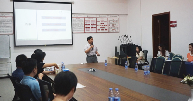 圖一:總經(jīng)理助理高靜做2021上半年經(jīng)營業(yè)績回顧 ;圖二:工程管理部李麗作《施工階段工程變更成本控制工作指引》制度宣貫;圖三:結(jié)算部晏群作結(jié)算工作分享;圖四:設(shè)計部周宇航作集團(tuán)新員工培訓(xùn)分享。