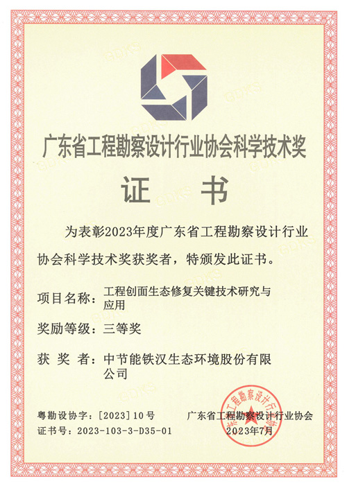 喜報 | 中節(jié)能鐵漢一項生態(tài)修復技術獲2023年度廣東省勘察設計行業(yè)協(xié)會科學技術獎三等獎