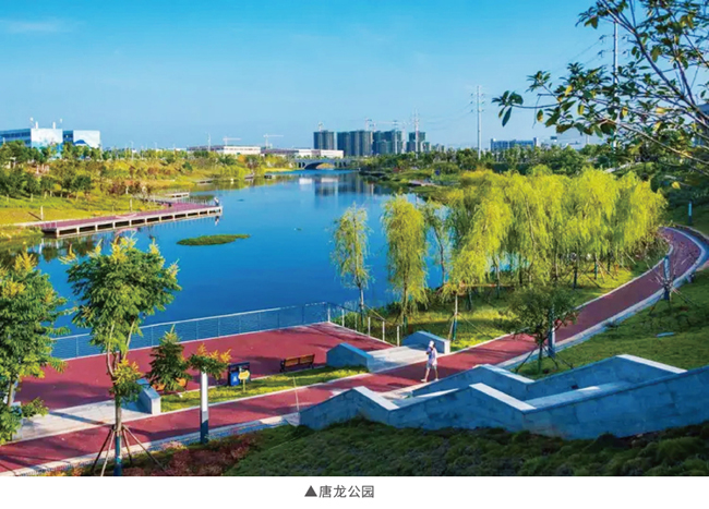 唐龍公園位于江西省贛州市城區(qū)內(nèi),秉持綠色環(huán)保的海綿城市建設理念,通過綠地種植、透水材料鋪設地面、雨水花園等設施,實現(xiàn)雨水的下滲、滯蓄、凈化、回用,有效提升城市排水系統(tǒng)標準,緩解內(nèi)澇壓力,展現(xiàn)城市的都市美和自然美。