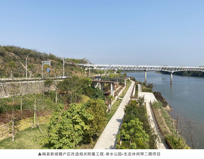 梅縣新城棚戶區(qū)改造相關(guān)附屬工程-親水公園•生態(tài)休閑帶二期項目位于梅州市梅縣區(qū),工程建設內(nèi)容包含市政道路、市政園林、水利。項目引入海綿城市設計理念打造生態(tài)公園,注重海綿城市技術(shù)措施的應用,將水利工程與道路、園林工程有機的結(jié)合起來,既改善了新縣城梅花山西片區(qū)的交通狀況,又為新城區(qū)百姓提供休閑、親水的活動場所,同時有效延伸了新城區(qū)防汛道路。