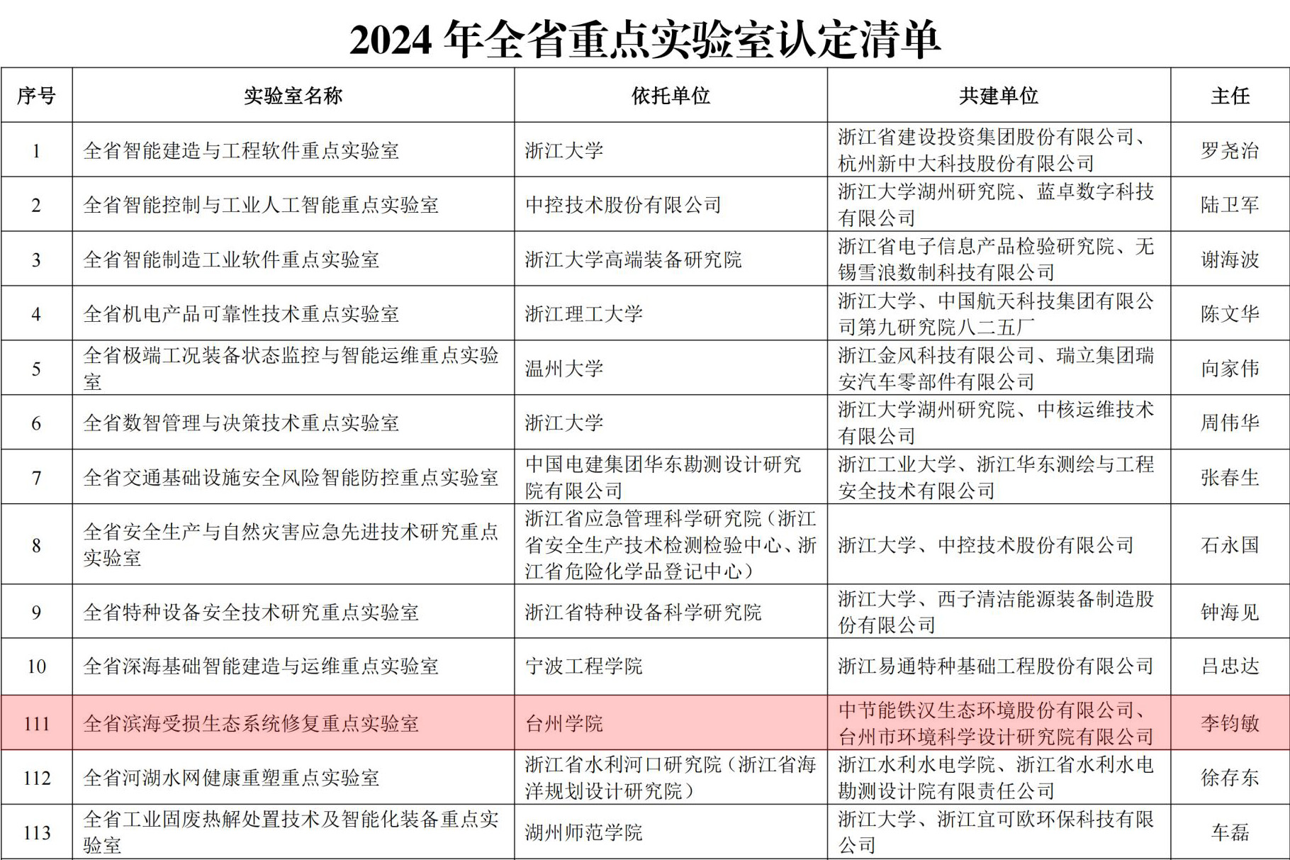 近日,中節(jié)能鐵漢生態(tài)環(huán)境股份有限公司與臺州學(xué)院、臺州市環(huán)境科學(xué)設(shè)計研究院有限公司共同申報的“全省濱海受損生態(tài)系統(tǒng)修復(fù)重點實驗室”通過浙江省科學(xué)技術(shù)廳認(rèn)定,成為浙江省首個濱海生態(tài)修復(fù)實驗室。