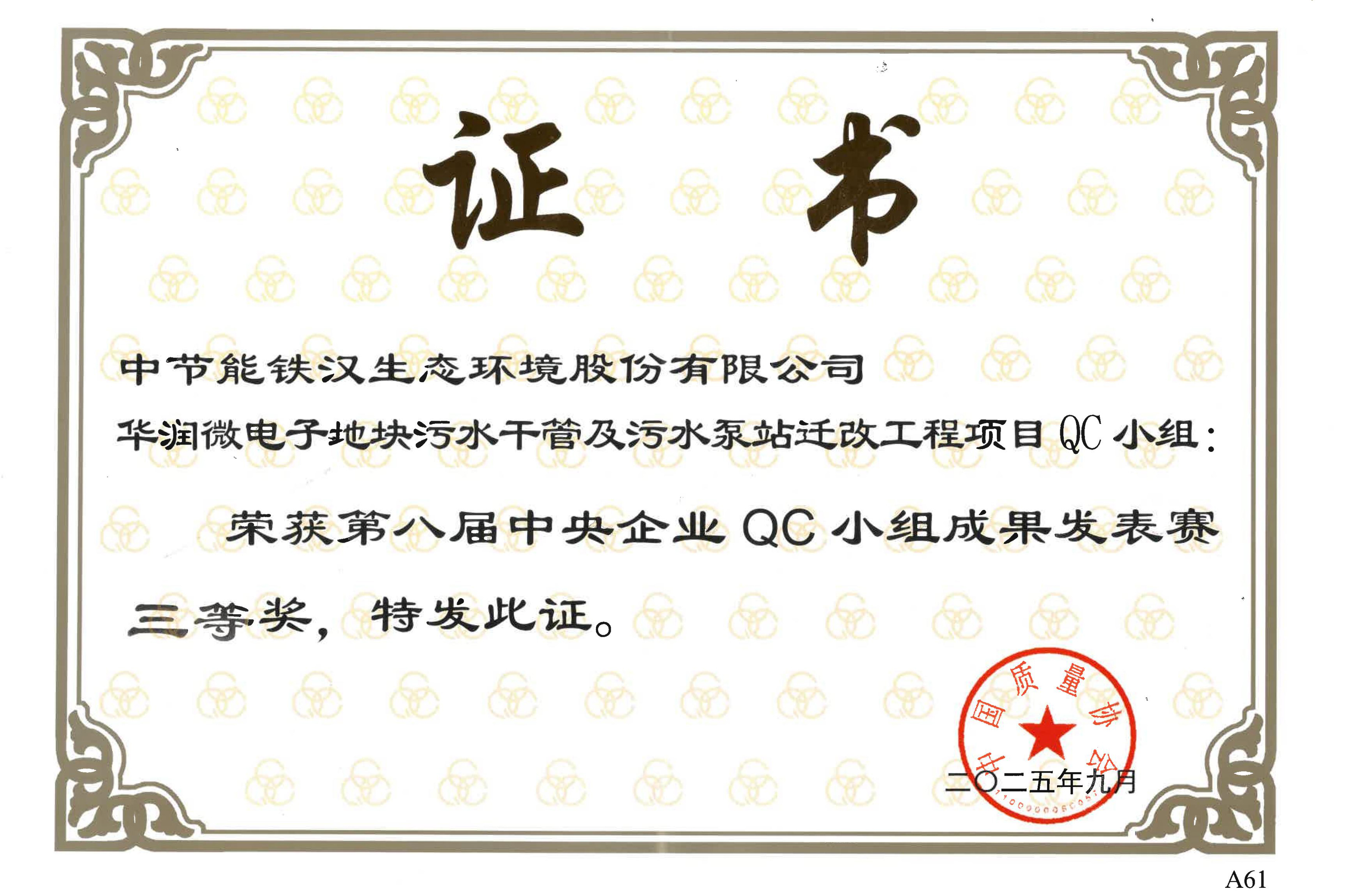近日,由國務(wù)院國資委社會責(zé)任局指導(dǎo)、中國質(zhì)量協(xié)會主辦的第八屆中央企業(yè)QC(質(zhì)量管理)小組成果發(fā)表賽落幕。中節(jié)能鐵漢“華潤微電子地塊污水干管及污水泵站遷改工程QC小組”匯報的《提高沉井下沉到位合格率》課題,憑借出色的創(chuàng)新能力和顯著實踐成效,榮獲大賽三等獎。