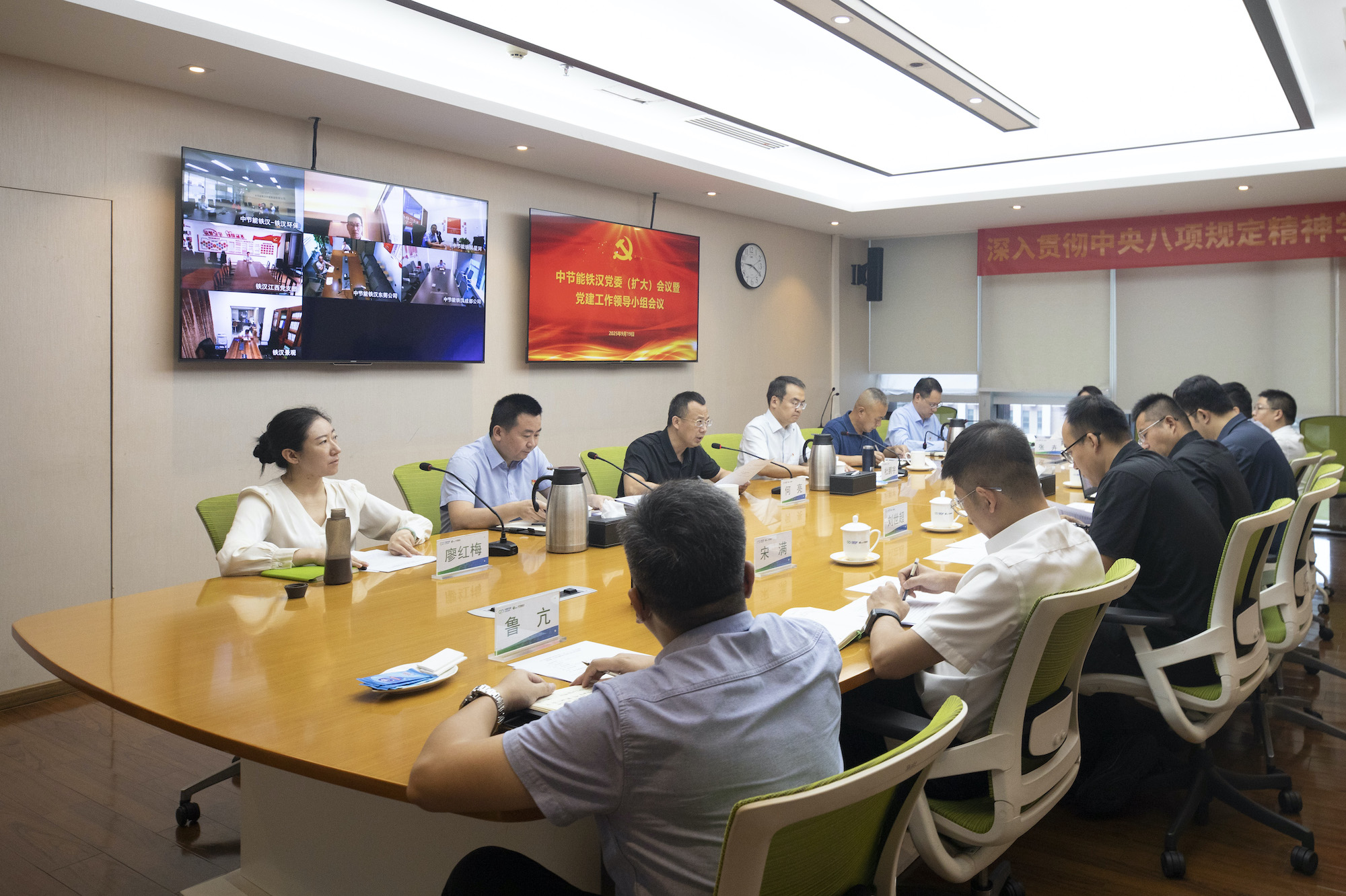 9月19日,中節(jié)能鐵漢黨委召開擴(kuò)大會議暨黨建工作領(lǐng)導(dǎo)小組會議,深入學(xué)習(xí)領(lǐng)會習(xí)近平總書記關(guān)于深入貫徹中央八項(xiàng)規(guī)定精神學(xué)習(xí)教育的重要指示精神,傳達(dá)學(xué)習(xí)中央黨的建設(shè)工作領(lǐng)導(dǎo)小組會議和國務(wù)院國資委黨委(擴(kuò)大)會議暨黨委黨建工作領(lǐng)導(dǎo)小組會議精神,貫徹落實(shí)集團(tuán)公司黨委常委會(擴(kuò)大)會議暨黨建工作領(lǐng)導(dǎo)小組會議要求,全面總結(jié)公司學(xué)習(xí)教育工作,研究部署下一階段重點(diǎn)任務(wù),進(jìn)一步鞏固拓展學(xué)習(xí)教育成果。公司黨委書記、董事長何亮主持會議并講話。