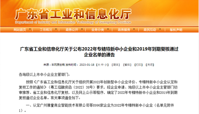 同時,根據(jù)廣東省工業(yè)和信息化廳發(fā)布的《關(guān)于公布2022年專精特新中小企業(yè)和2019年到期復(fù)核通過企業(yè)名單的通知》,鐵漢環(huán)保被認(rèn)定為廣東省2022年度專精特新中小企業(yè),有效期自公布之日起三年。“專精特新”中小企業(yè)是指實現(xiàn)專業(yè)化、精細(xì)化、特色化發(fā)展、創(chuàng)新能力強、質(zhì)量效益好的優(yōu)質(zhì)企業(yè)。本次“專精特新”中小企業(yè)評選是廣東省工信廳基于從事特定細(xì)分市場年限、研發(fā)費用總額、研發(fā)強度、營業(yè)收入等基本條件,選拔出創(chuàng)新能力強、市場占有率高、質(zhì)量效益優(yōu)的排頭兵。
