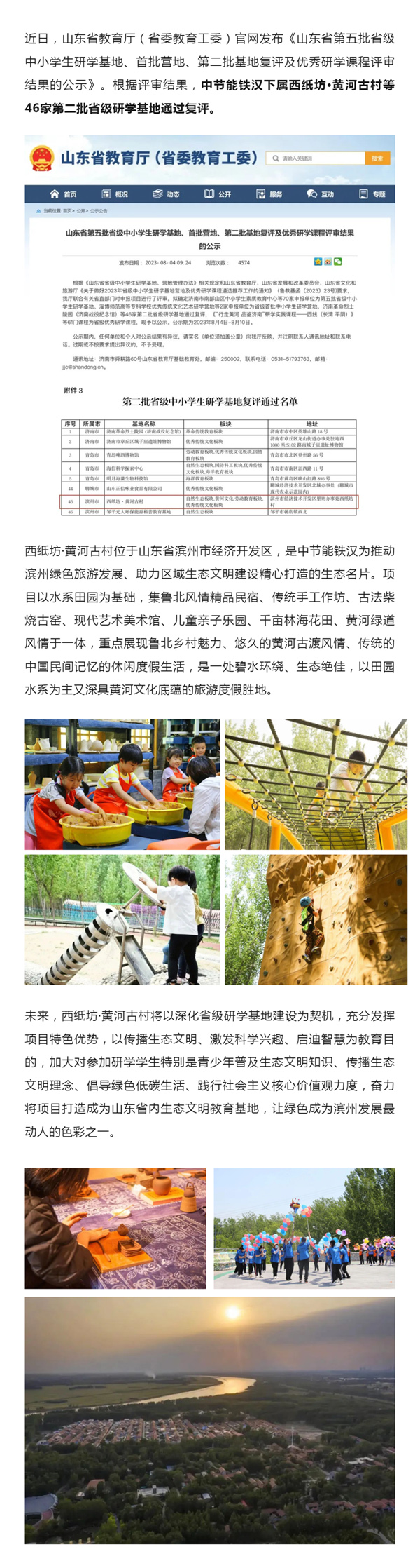 西紙坊·黃河古村通過山東省第二批省級中小學(xué)生研學(xué)基地復(fù)評