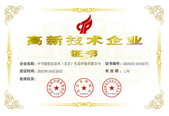 近日,中節(jié)能鐵漢所屬鐵漢星河收到北京市科學(xué)技術(shù)委員會、北京市財政局、國家稅務(wù)總局北京市稅務(wù)局聯(lián)合頒發(fā)的《高新技術(shù)企業(yè)證書》,這是鐵漢星河自2014年以來,第四次獲得該證書。