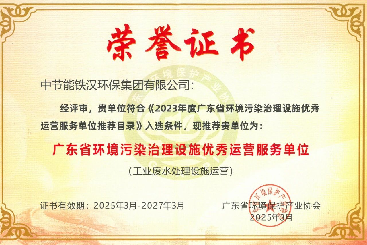 為進一步促進廣東省環(huán)境污染治理設(shè)施運營服務(wù)市場高質(zhì)量發(fā)展,樹立行業(yè)先進典型和標(biāo)桿,支撐深入打好污染防治攻堅戰(zhàn),廣東省環(huán)境保護產(chǎn)業(yè)協(xié)會組織開展了“2023年度廣東省環(huán)境污染治理設(shè)施優(yōu)秀運營服務(wù)單位”的征集申報工作,經(jīng)過材料初審、專家核查、會議評審和名單公示等環(huán)節(jié),中節(jié)能鐵漢所屬中節(jié)能鐵漢環(huán)保集團有限公司(下稱“鐵漢環(huán)保”)成功入選《2023年度廣東省環(huán)境污染治理設(shè)施優(yōu)秀運營服務(wù)單位推薦目錄》,獲評“廣東省環(huán)境污染治理設(shè)施優(yōu)秀運營服務(wù)單位(工業(yè)廢水處理設(shè)施運營)”。